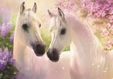 Алмазная вышивка «Пара белых лошадей среди цветов» 30x40 см